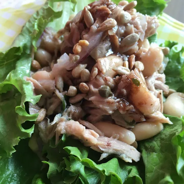 Dans un bol moyen, mélanger légèrement le thon, la mangue et le poivron jusqu'à homogénéité.
