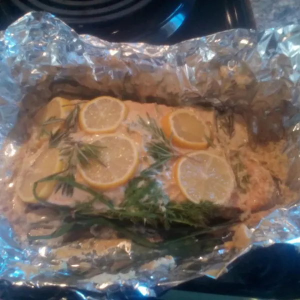 Cytrynowy Koperkowy Łosoś Z Czosnkiem, Białym Wino I Sosem Maślanym