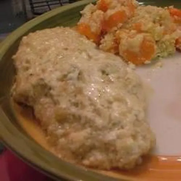 Ułóż piersi kurczaka panierowane na wierzchu mieszanki warzyw w naczyniu do pieczenia.
