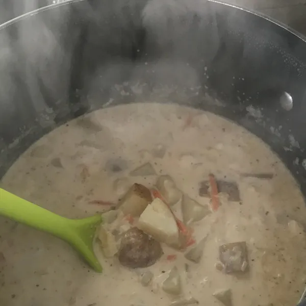Doprowadź do wrzenia, następnie zmniejsz ogień i gotuj, aż warzywa będą miękkie łatwo widelcem.