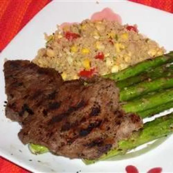 Grill pod przykryciem, jeśli używasz grilla na świeżym powietrzu, aż zrumienią się z widocznymi śladami grilla, 2 do 3 minut z każdej strony, aby uzyskać średnie wysmażenie.
