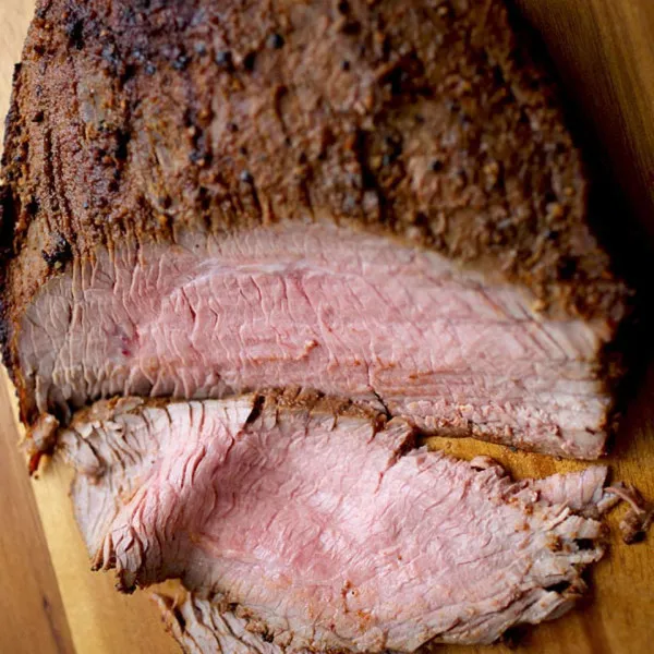 Pokrój stek z boku na pojedyncze paski, aby podać.