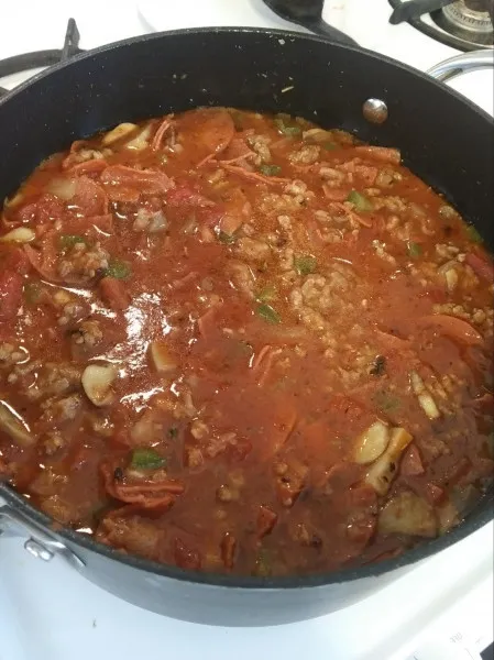 Zredukować ogień do wrzenia i gotować na wolnym ogniu, aż makaron będzie miękki, około 10 minut.