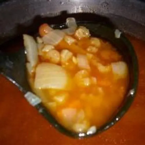 Dodaj nierozcieńczoną zupę, chili w proszku, sól i sos Worcestershire.
