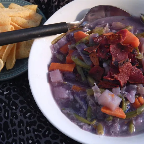 Dodaj ziemniaki, ocet i sól Gotuj przez 45 minut do 1 godziny, aż wszystko będzie miękkie.