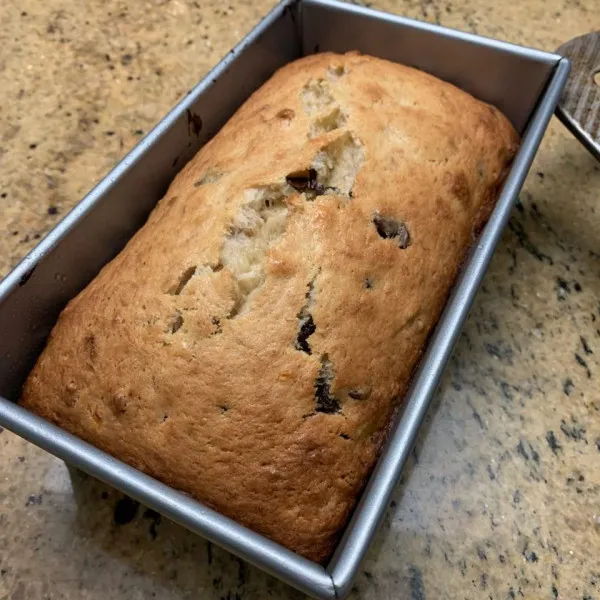 Hornee en un horno precalentado durante 60 minutos, o hasta que al insertar un palillo en el centro del pan, éste salga limpio.